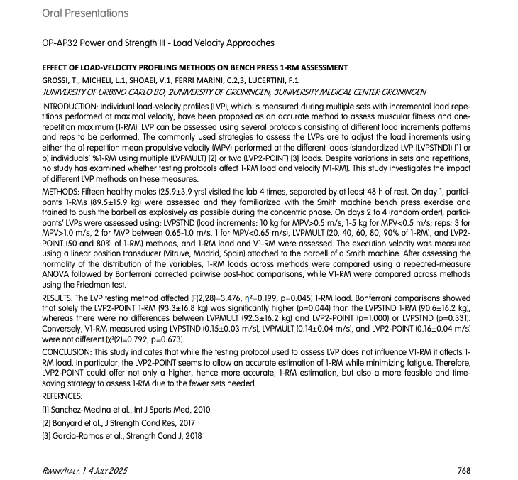 BOOK OF ABSTRACTS 30th Annual Congress of the EUROPEAN COLLEGE OF SPORT SCIENCE (1 - 4 July 2025). EFFECT OF LOAD-VELOCITY PROFILING METHODS ON BENCH PRESS 1-RM ASSESSMENT